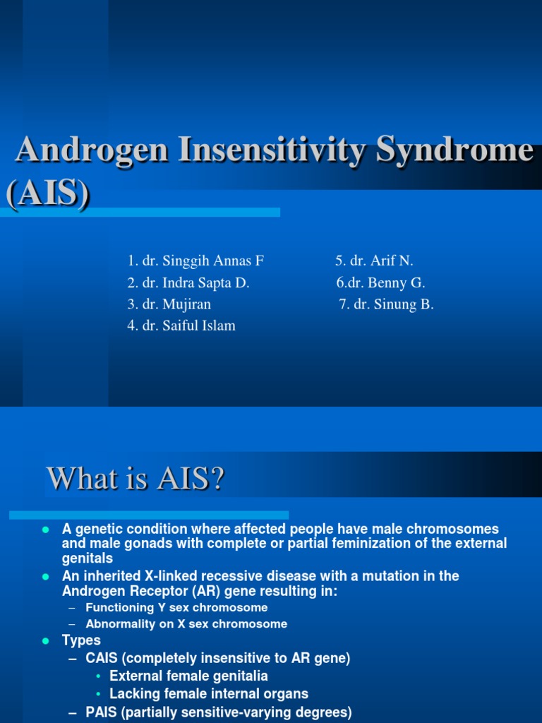 Klinefelter syndrome as related to Androgen insensitivity ... from globalgenes.org Put simply, the automatic identification system (ais) is a very high frequency (vhf) radio broadcasting system that transfers packets of data over the vhf data link (vdl) and enables. I tillegg til androgen insensitivitet syndrom har ais andre betydninger. Due to defect in gene that codes for androgen receptor, testosterone can't act on target tissues. De er listet opp til venstre under. Vesselfinder displays real time ship positions and marine traffic detected by global ais network. Androgen ufølsomhed syndrom er en genetisk lidelse, hvor en mand eller xy, foster det påvirker udviklingen af kønsorganerne og det reproduktive system. Androgen ufølsomhed syndrom eller androgen ufølsomhed syndrom (ais) er en genetisk lidelse, der får en baby dreng til at blive fysisk født som en kvinde. Charakteristisch sind äußere weibliche genitalien, intermediäres genitale oder.